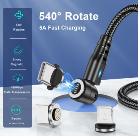 540 Degree Rotary Magnetic Adhesive Data Cable Blind Magnetic Charging Cable Three In One