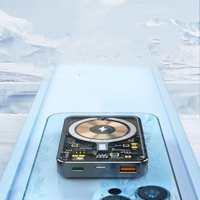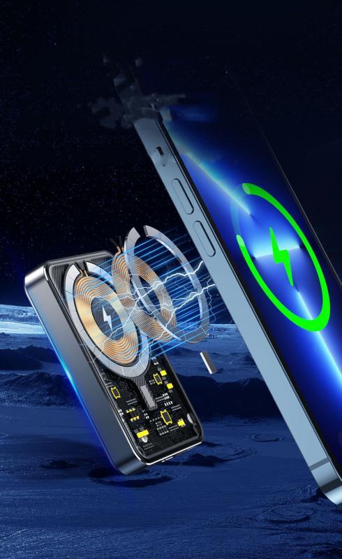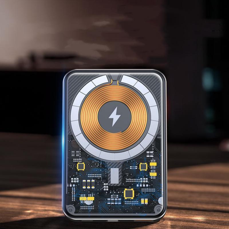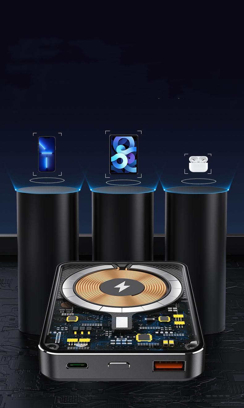 Aluminum Alloy Transparent Magnetic Power Bank Industrial Wind Fast Charging Mobile Power Supply Wireless Charger Large Capacity 10000 MA
