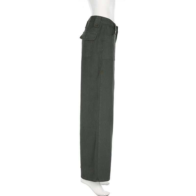 American Street Pocket High Waist Work Clothes Straight-leg Pants Women