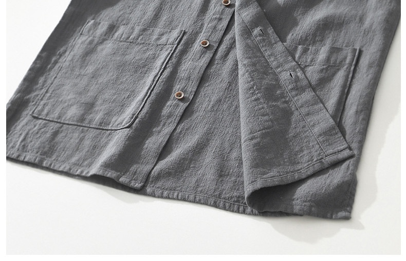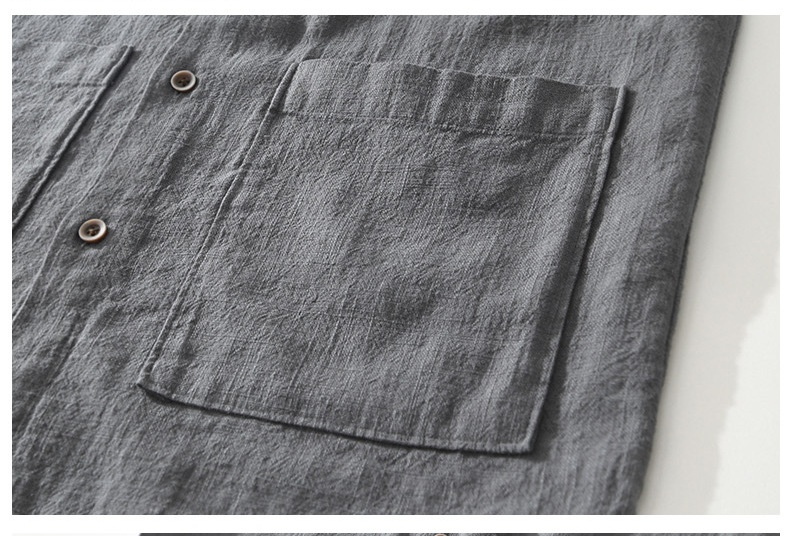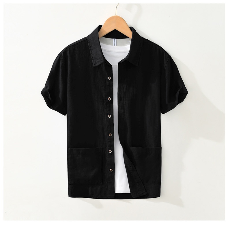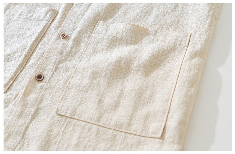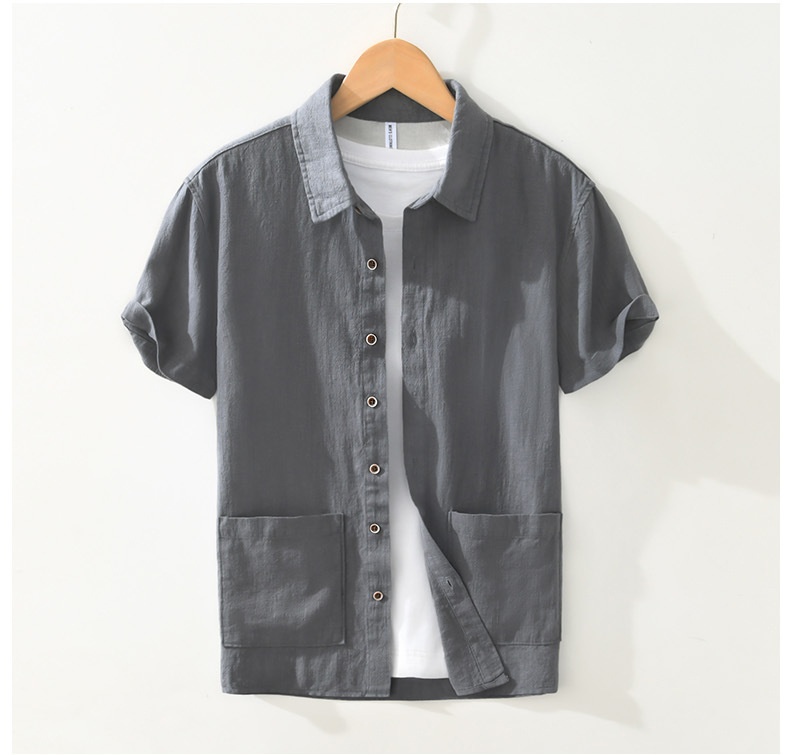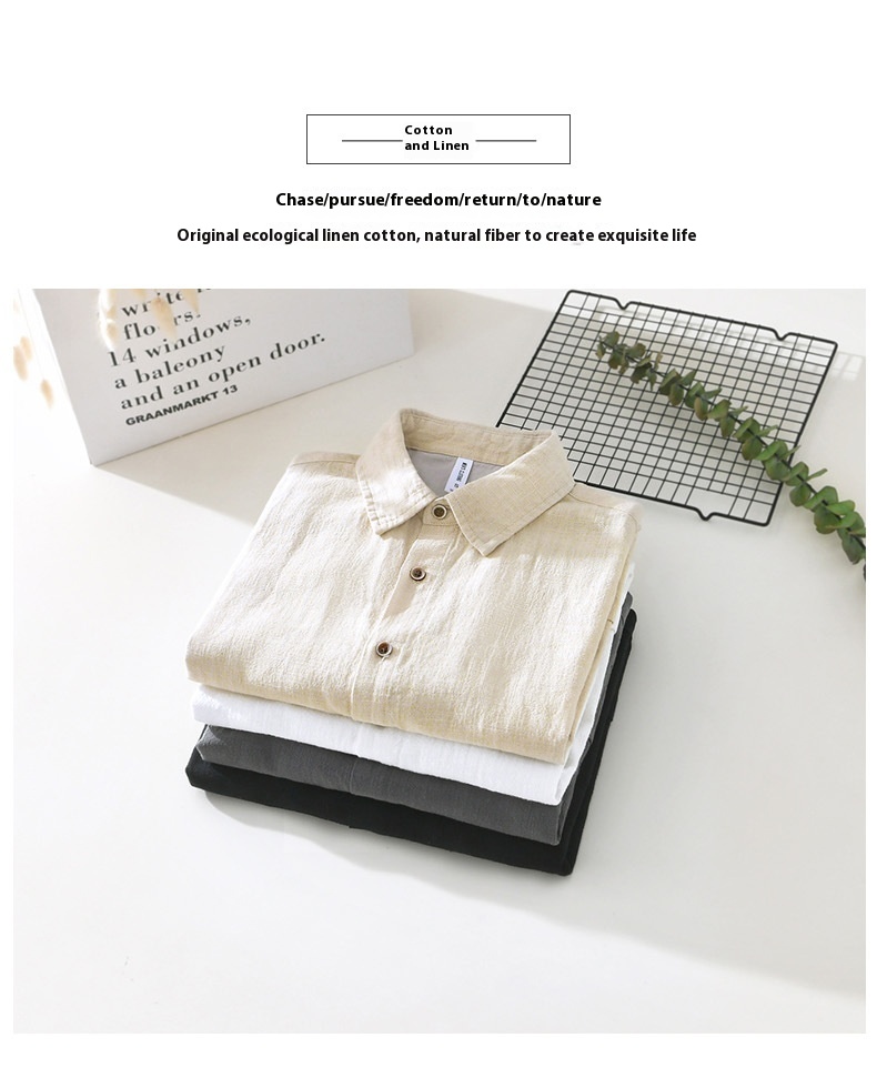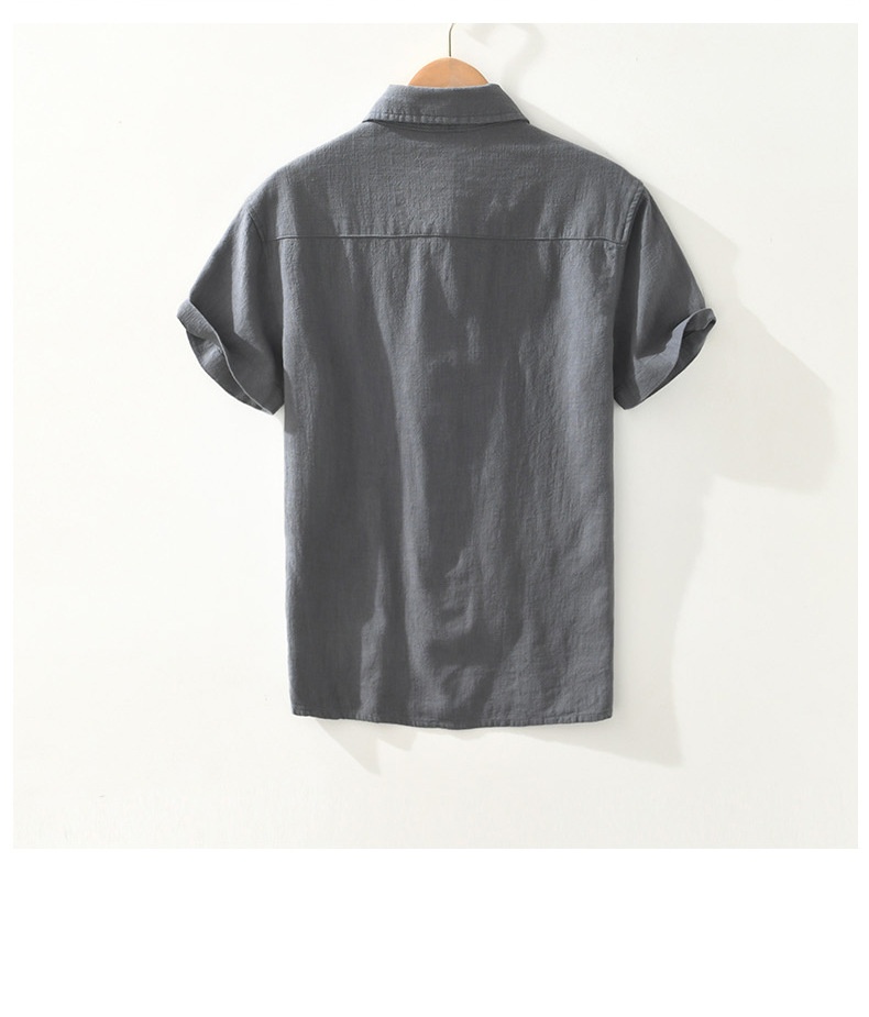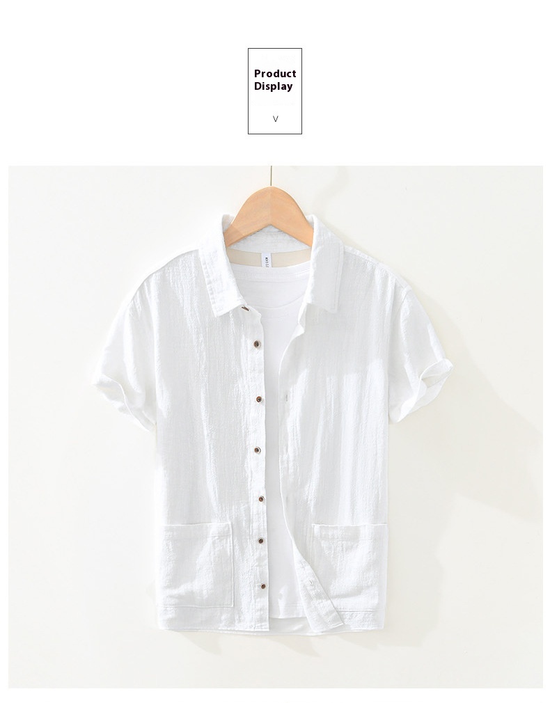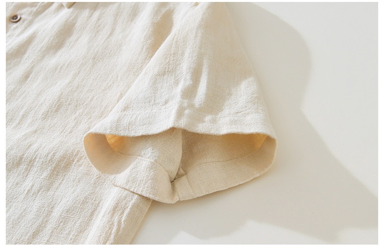 Breathable Cotton Linen Ramie Shirt Lapel Short Sleeve