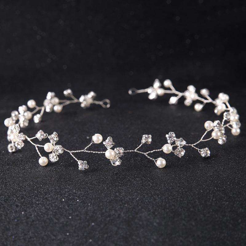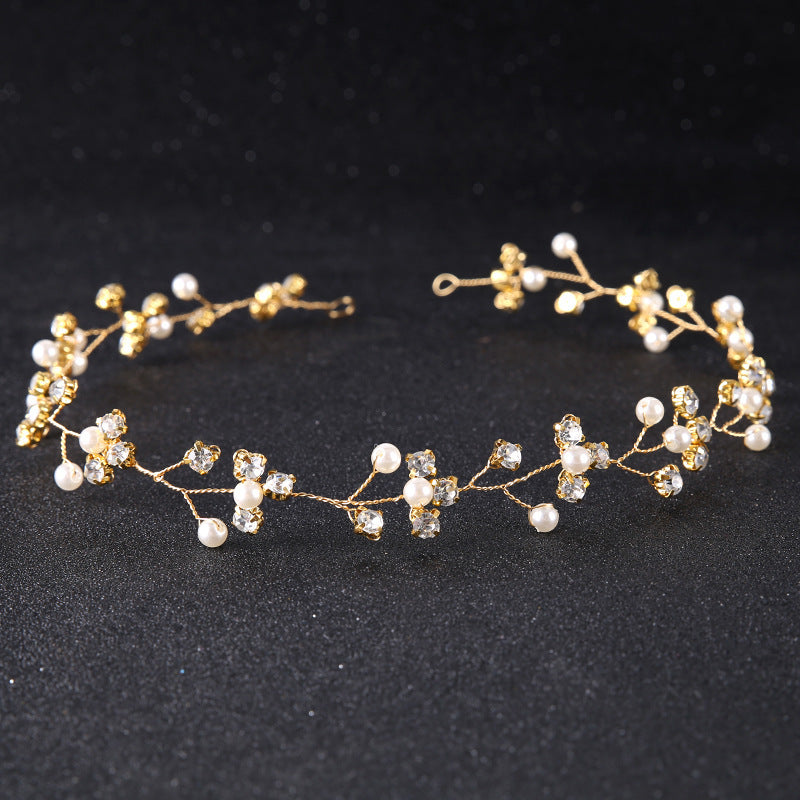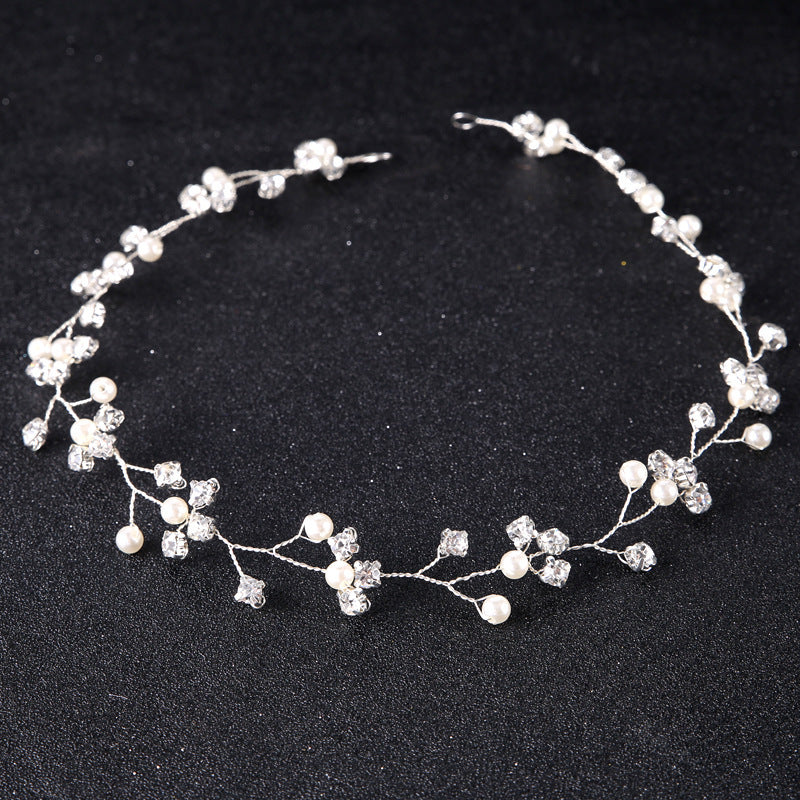 Bride Hair Accessories Pearl Rhinestone Headband White Gauze Dress Bridal Jewelry Children's Hair Accessories