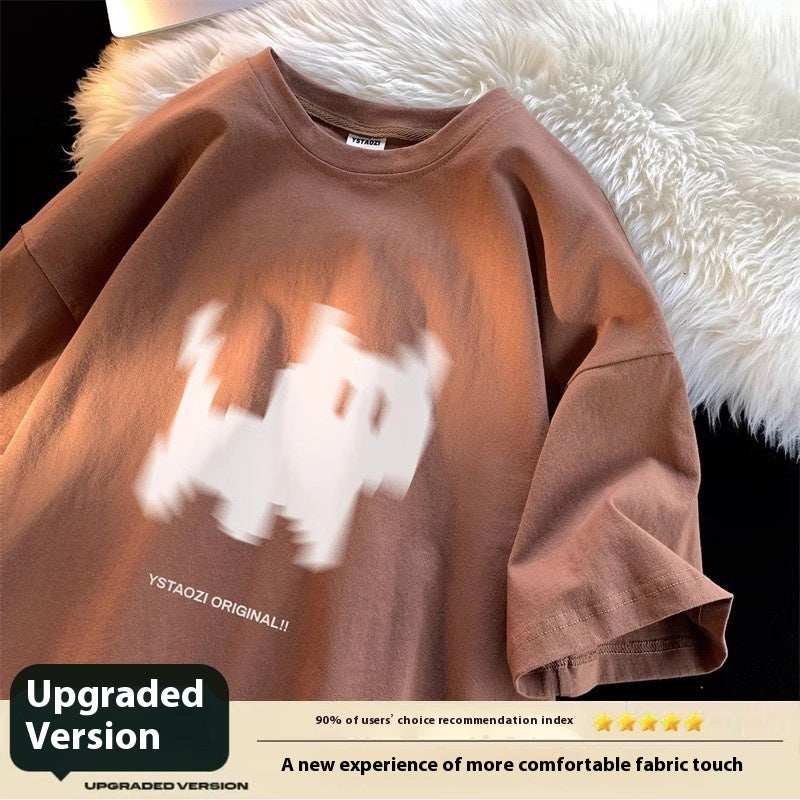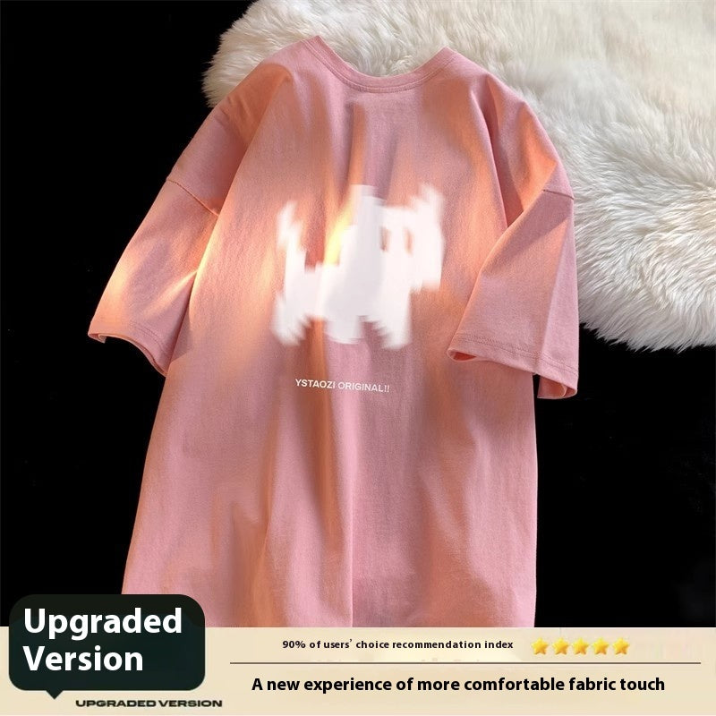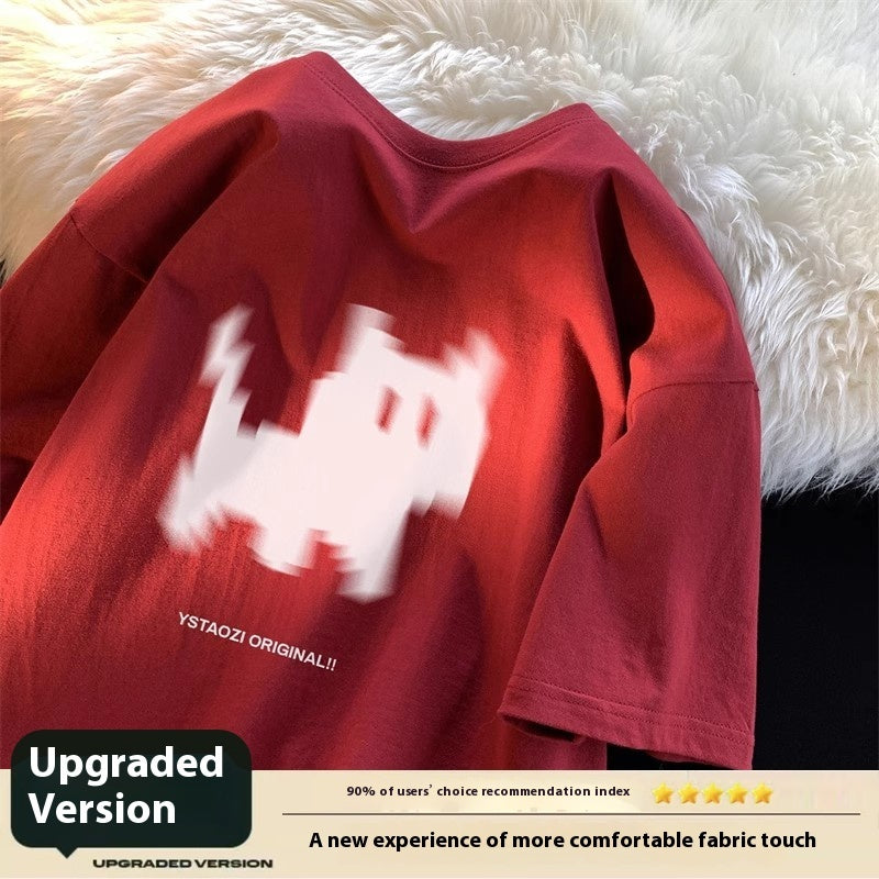 Cat Print Hong Kong Style Loose Short Sleeved Shirt