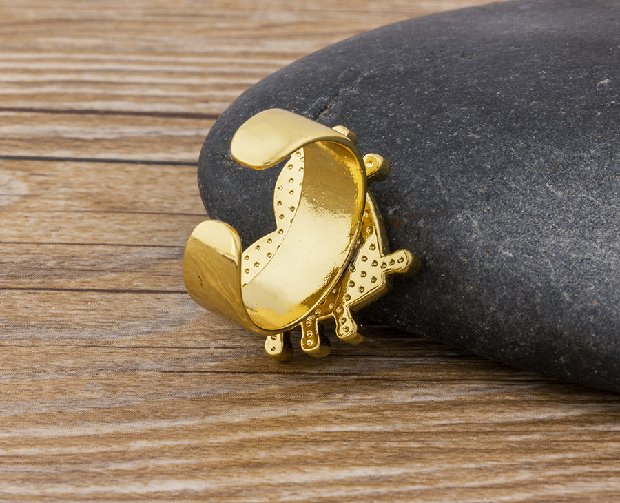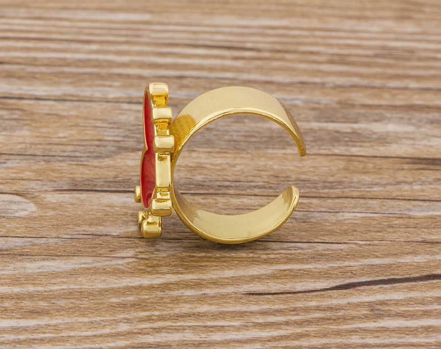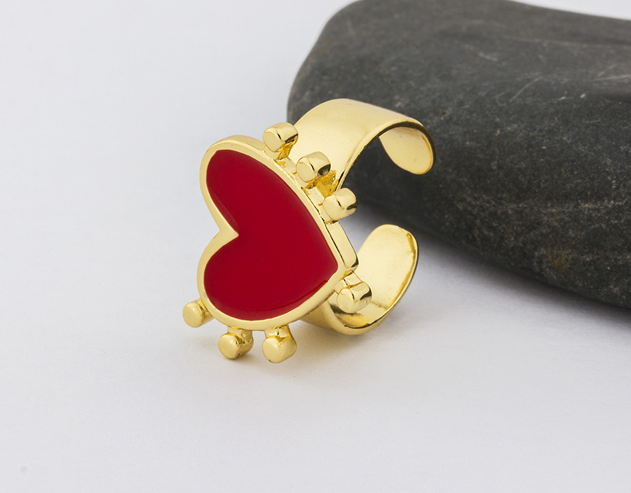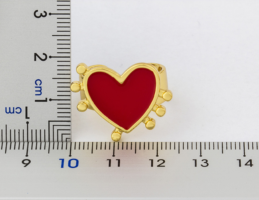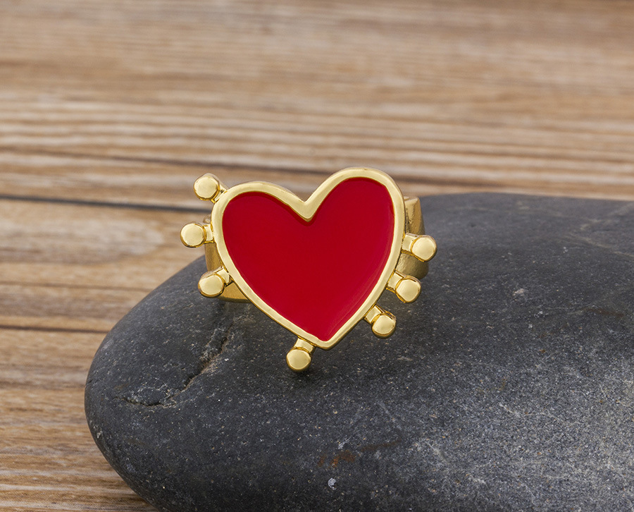 Copper Plating 18K Real Gold European And American Open Drop Oil Red Heart-shaped Ring For Women
