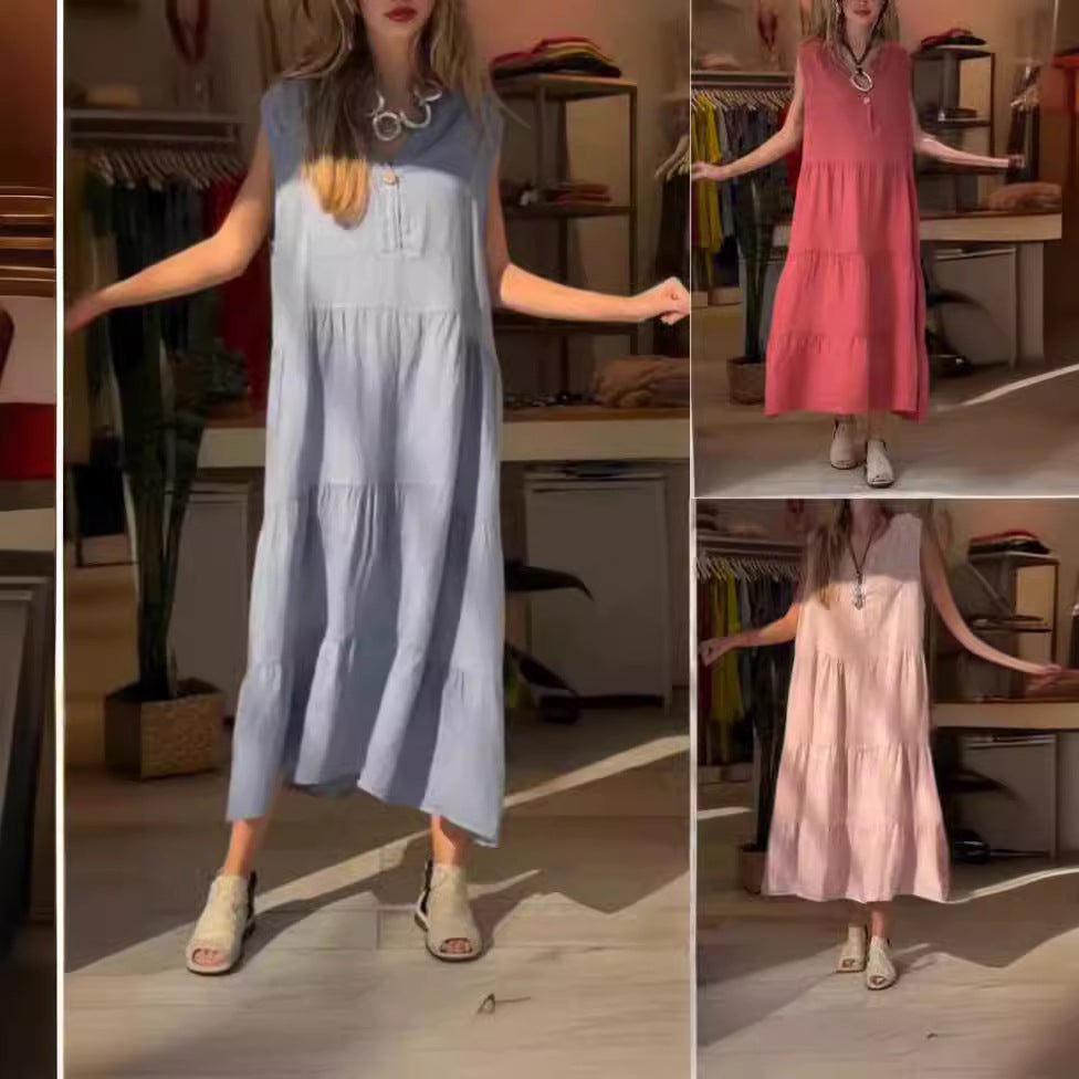 European And American Style Women Cotton Linen Dress Long Dress Women's Clothing