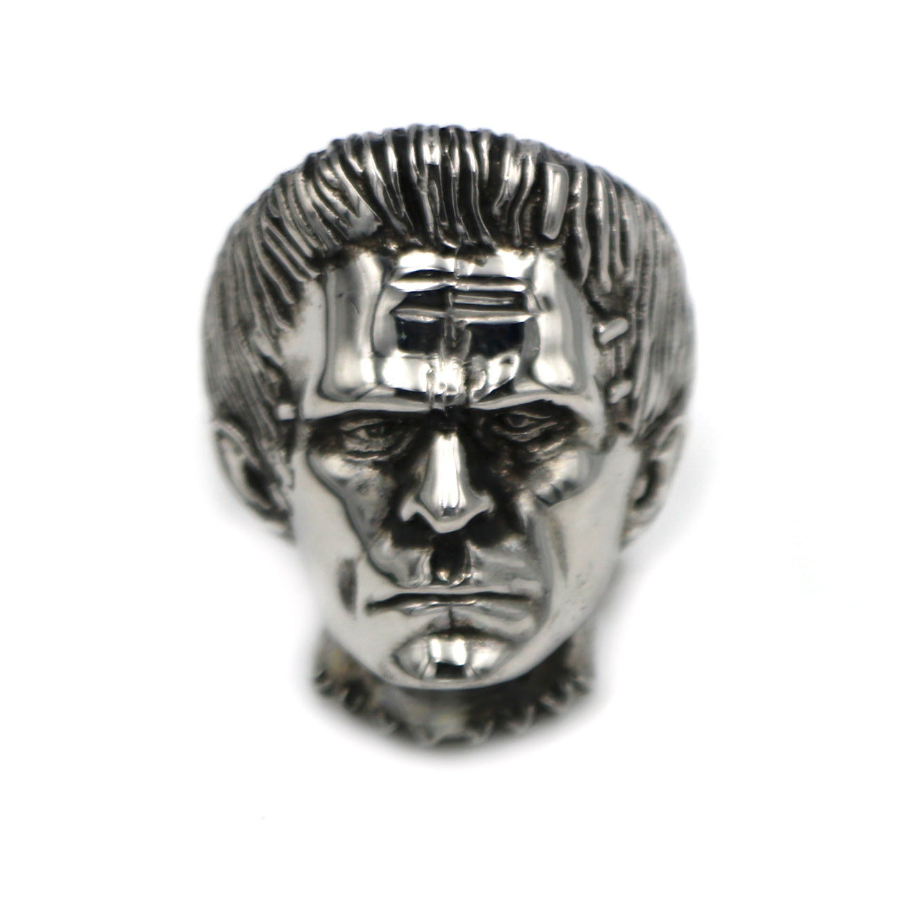 EYHIMD Science Fiction Victor Frankenstein Rings Punk Horror Scientist Stainless Steel Skull Ring Mens Biker Jewelry