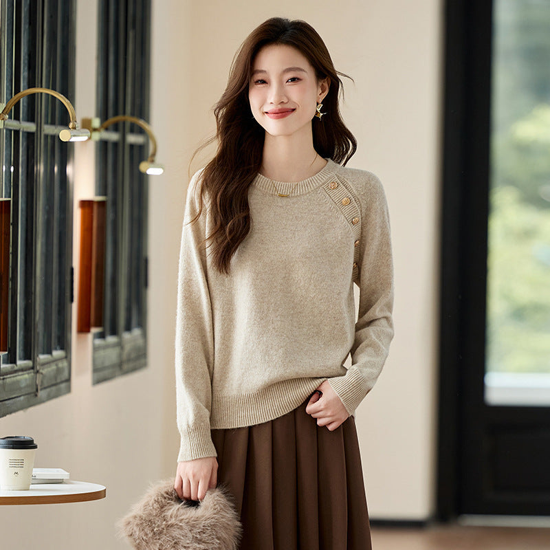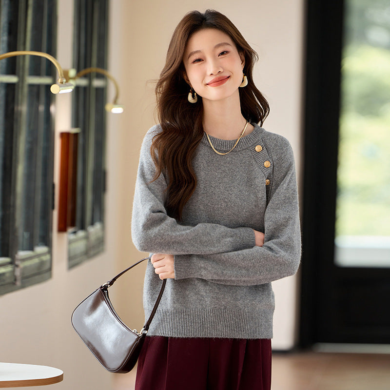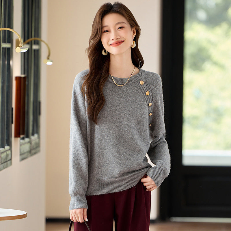 French Style Gold Buckle Design Sense Lazy And Loose Knitwear Sweater