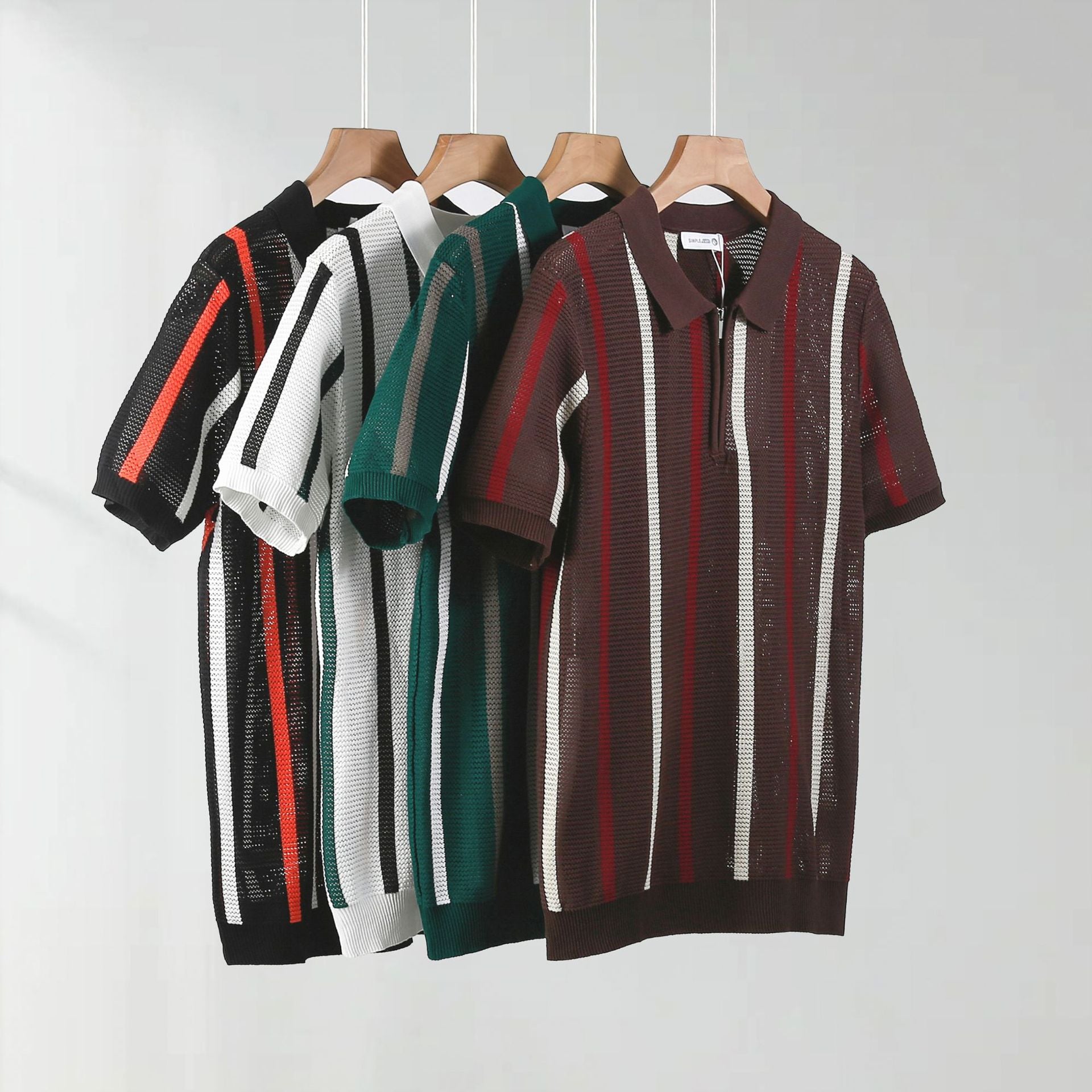 Hollow Mesh Short-sleeved Knitting Polo Shirt