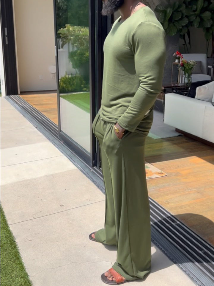 Men's Casual Solid Color Long Sleeve Top & Pants Set