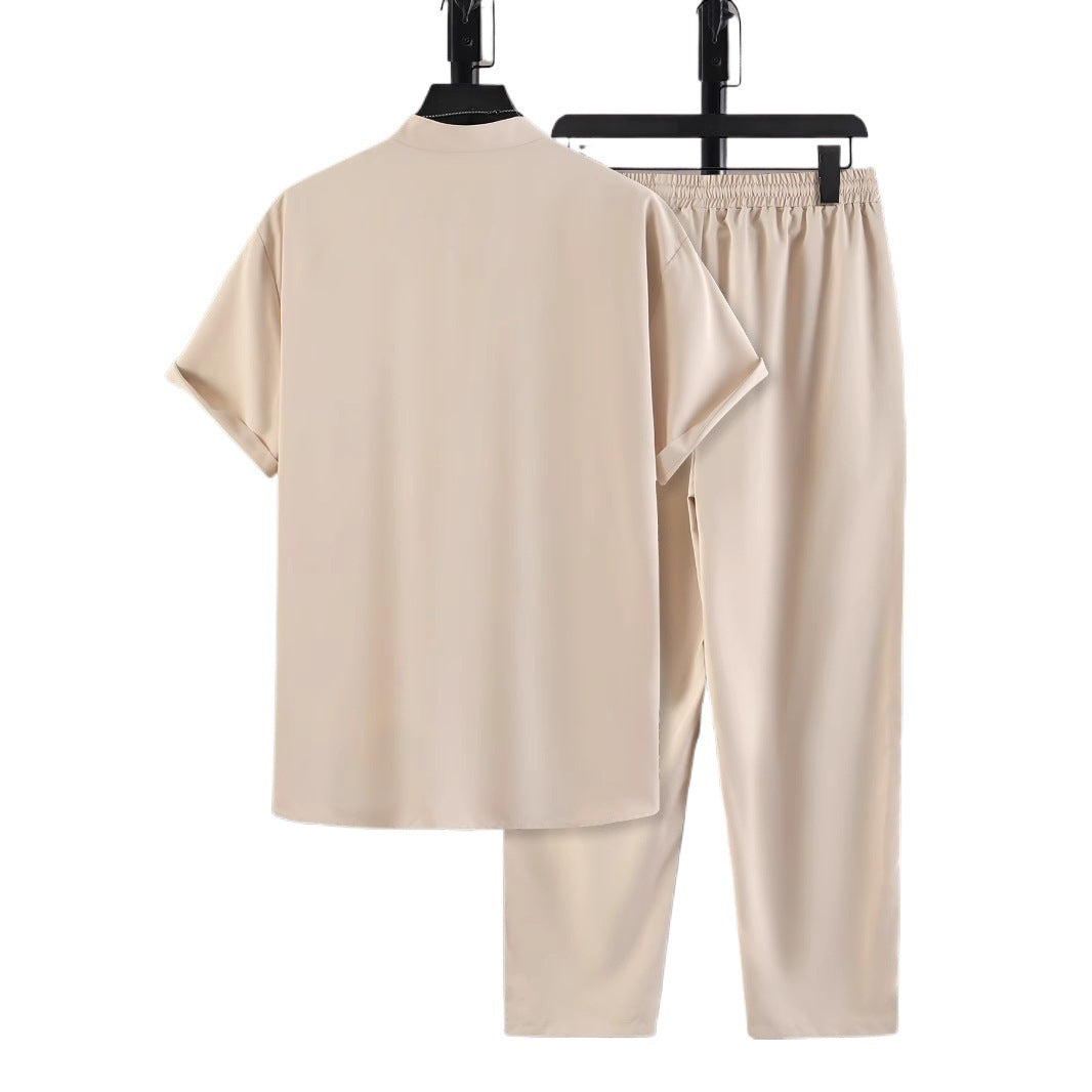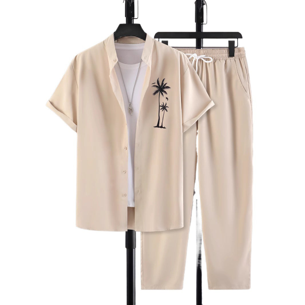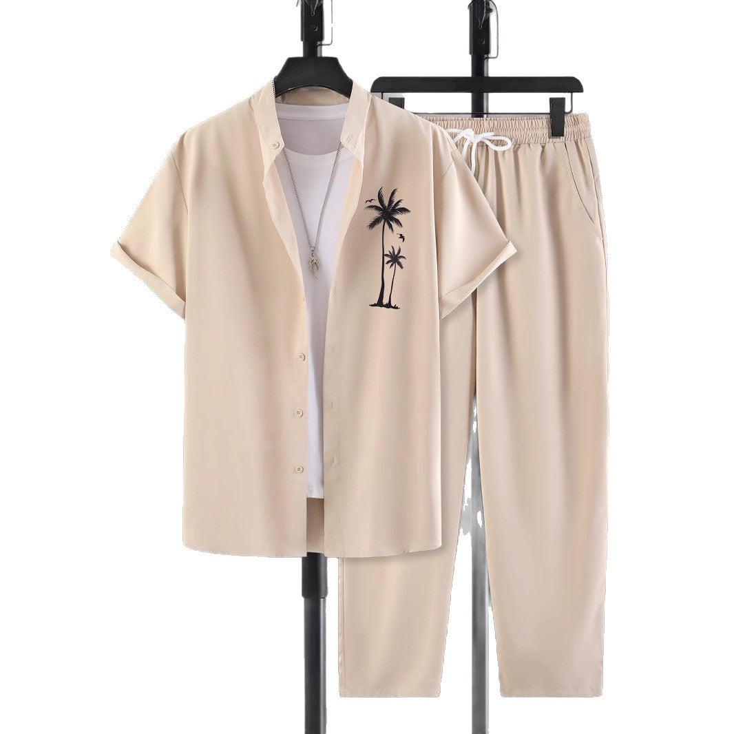 Men's European-size Coconut Printed Short-sleeved Shirt Trousers