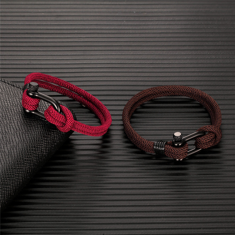 Mens Fashion Personality Horseshoe Buckle Woven Bracelet