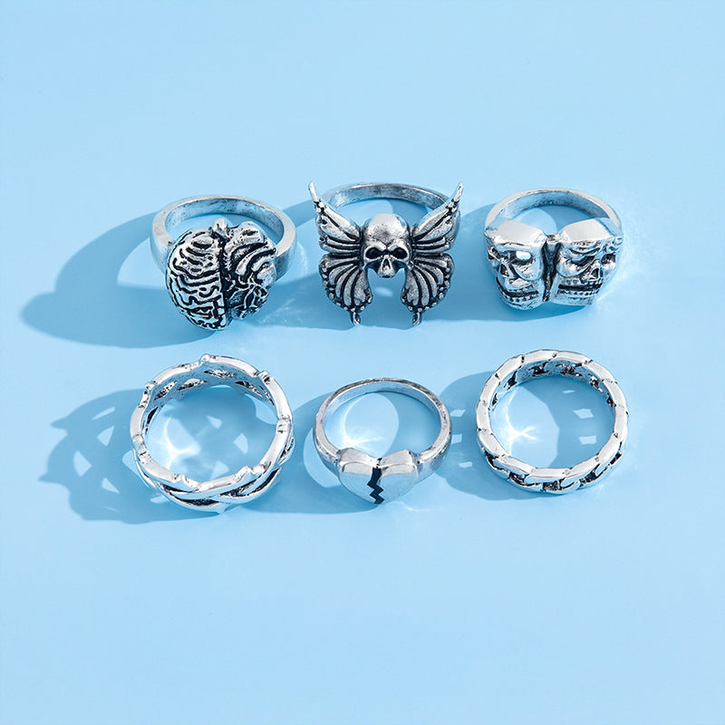Mens Fashion Vintage Exaggerated Skull Hollow Brain Love Necronomicon Ring
