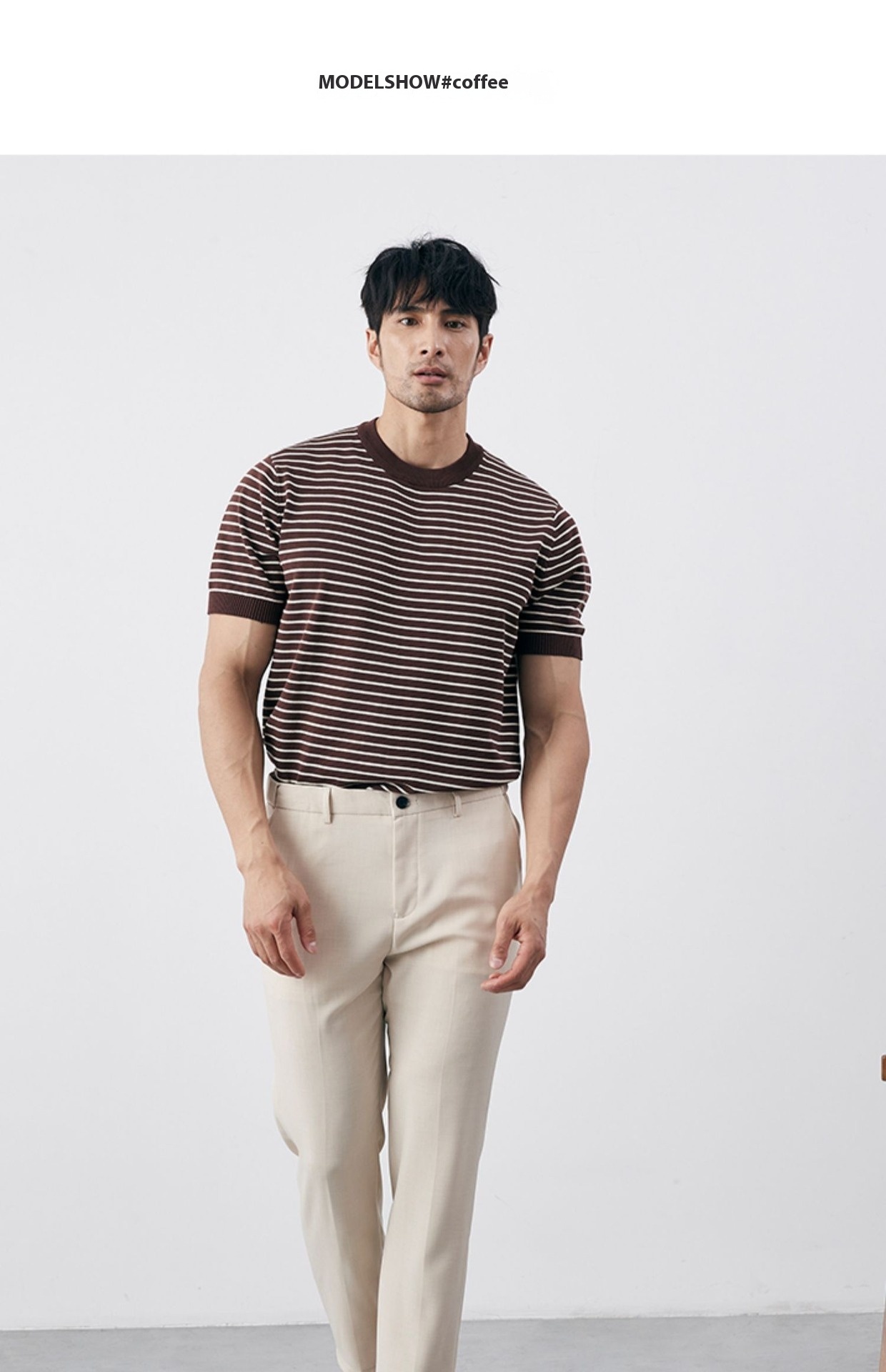 Men's High-grade Casual Striped Round Neck Knitted T-shirt