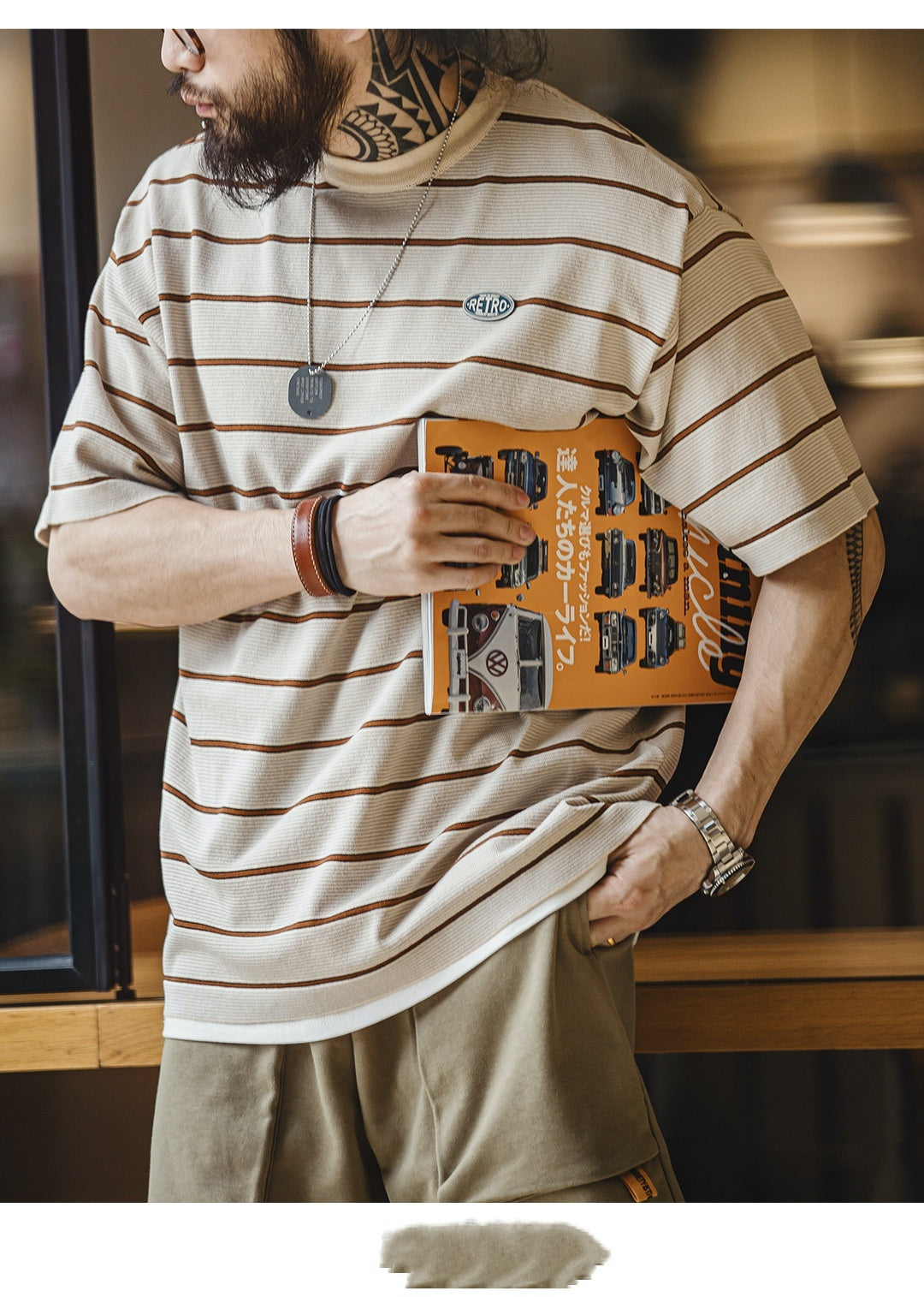 Men's Retro Fine Striped Contrasting Short Sleeved Shirt
