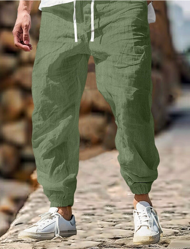 Men's Summer Linen Trousers Elastic Waist