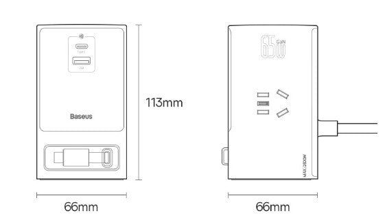 Miliboo GaN 65W Phone Fast Charge Head PD65W Gallium Nitride Charger AC Patch Board Power Strip QC30