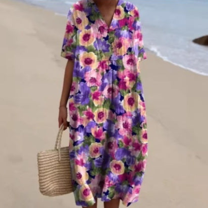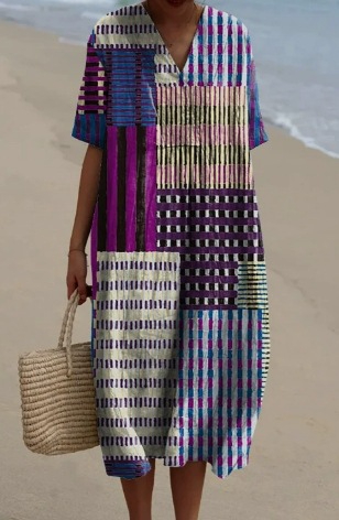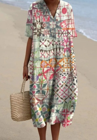 Plus Size Women's Blouse Short Sleeve Dress Creative Fish Pattern Vacation Style Dress Factory