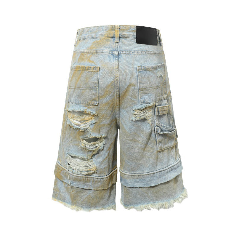 Printed Loose Denim Cropped Pants Men's Casual Wide Leg Shorts