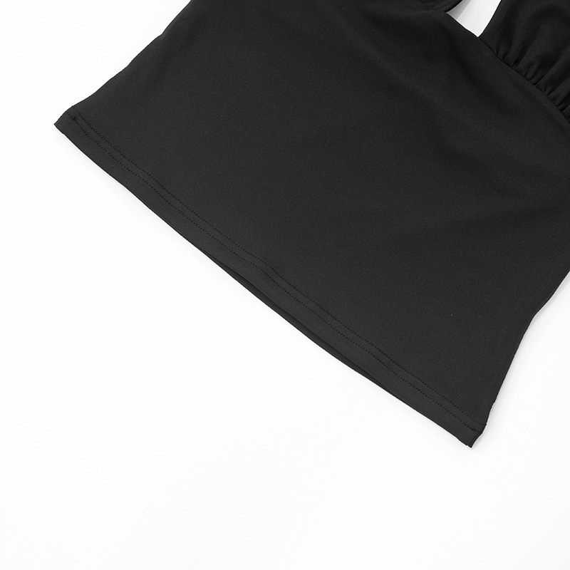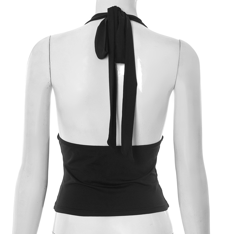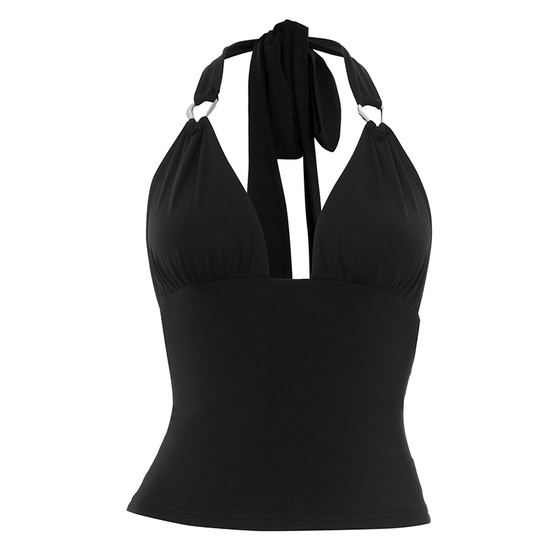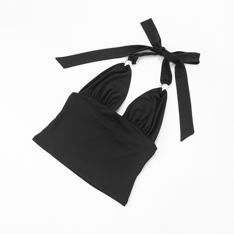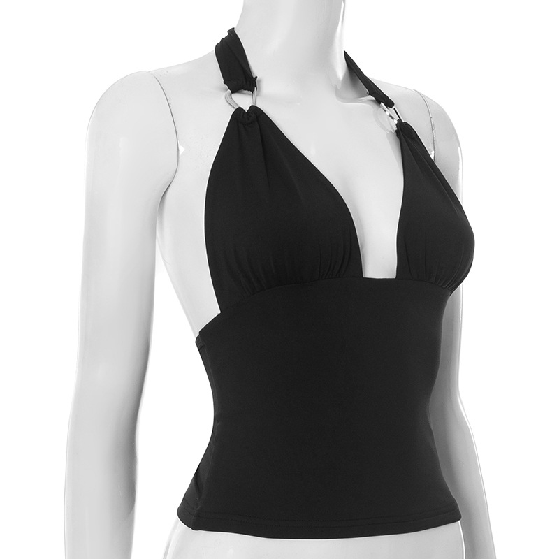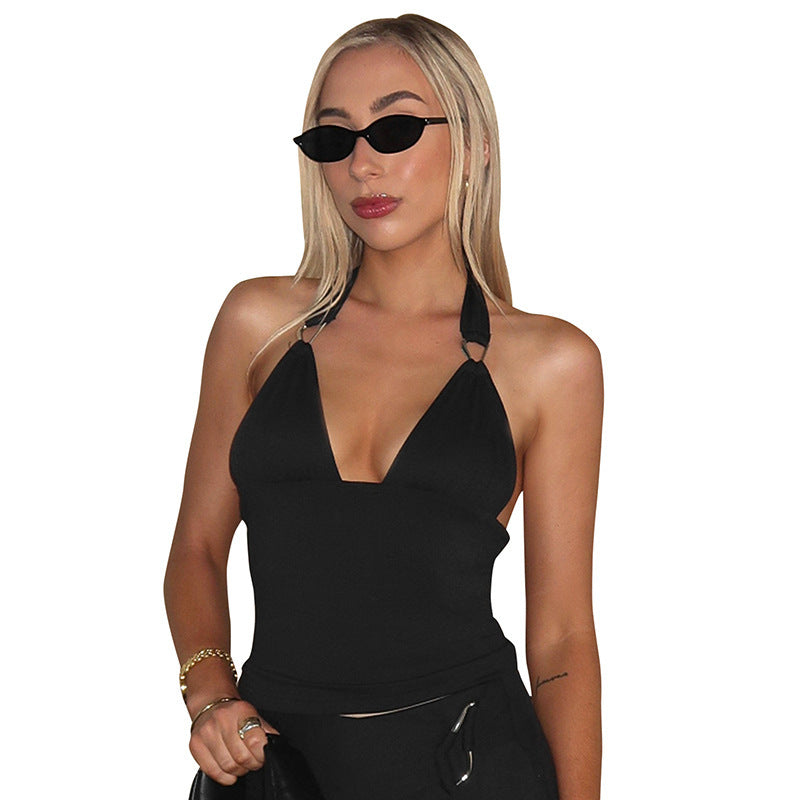 Pure Color Halter Metal Ring V-neck Slim Vest