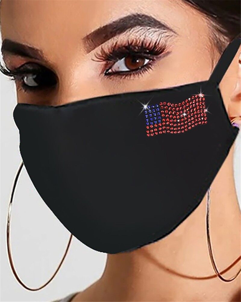 Riding Mask Cotton Dustproof Black Fashion Flashing Diamonds With Rhinestones