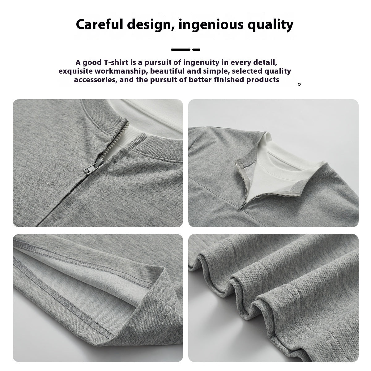 Simple Solid Color Loose Zip False Two-piece Patchwork Top