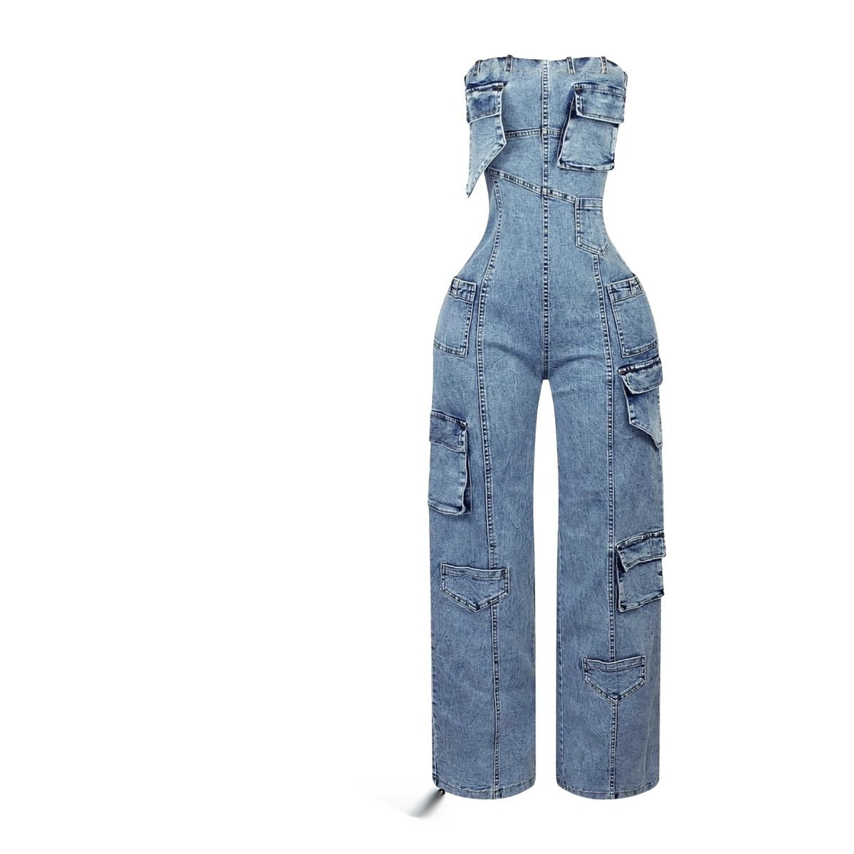 Stretch Overalls Casual Straight-leg Denim Trousers