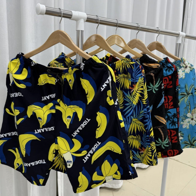 Summer Beach Pants Men's Loose Casual Fifth Pants Ice Silk High Elasticity Quick-drying