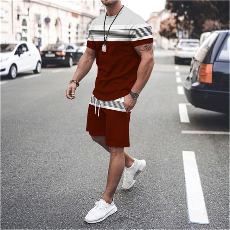 Summer Men's Short Sleeved Sports And Leisure Striped Round Neck