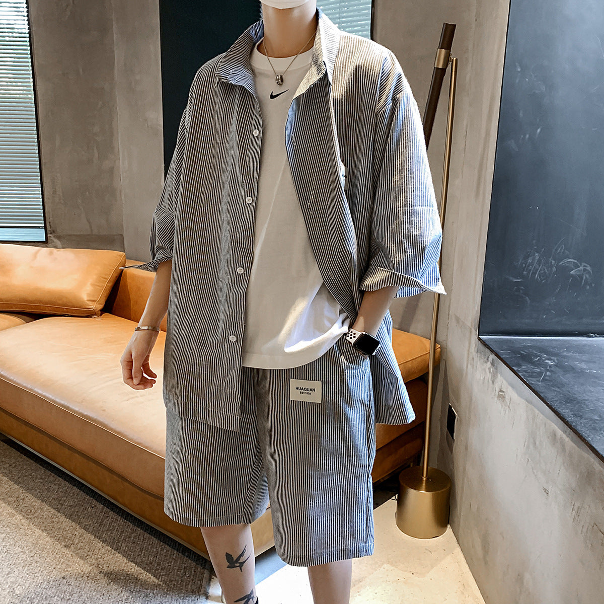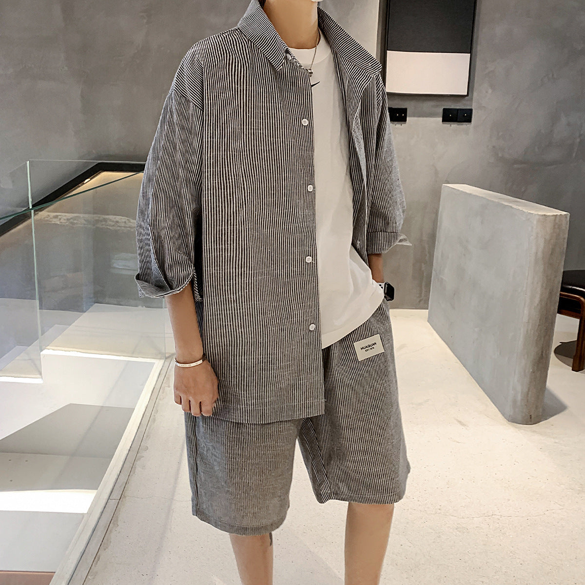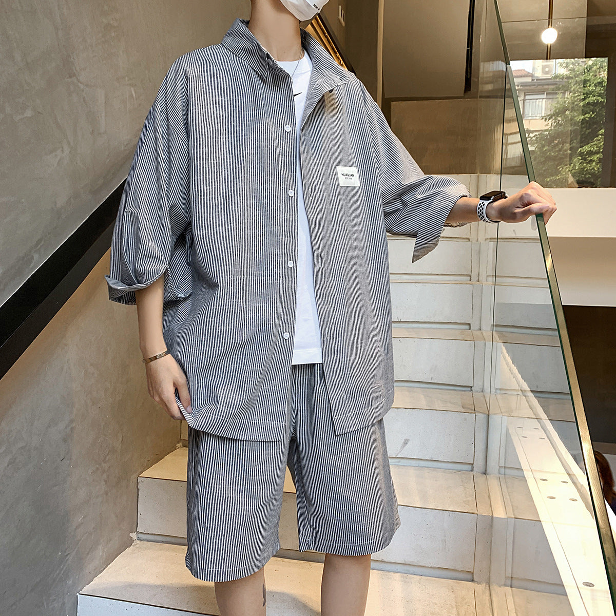 Summer New Striped Shirt Casual Five-point Pants Suit