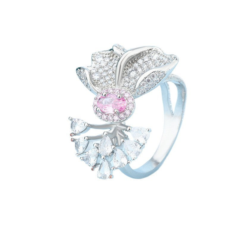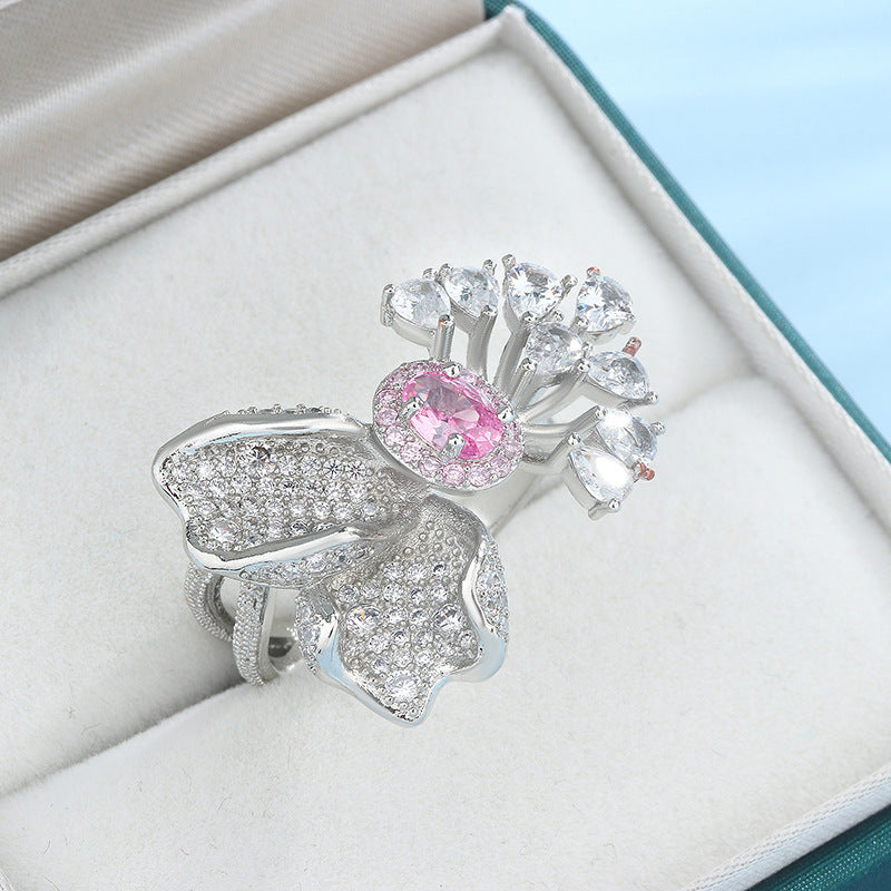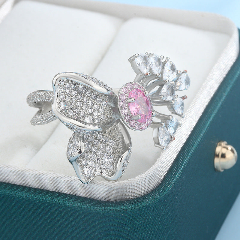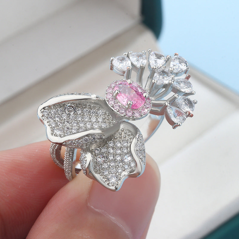 Super Shiny Cherry Blossom Powder Zirconium Female Ring