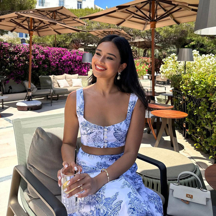 Tank Top Hip Wrap Half Skirt Fashionable And Stylish Two-piece Set