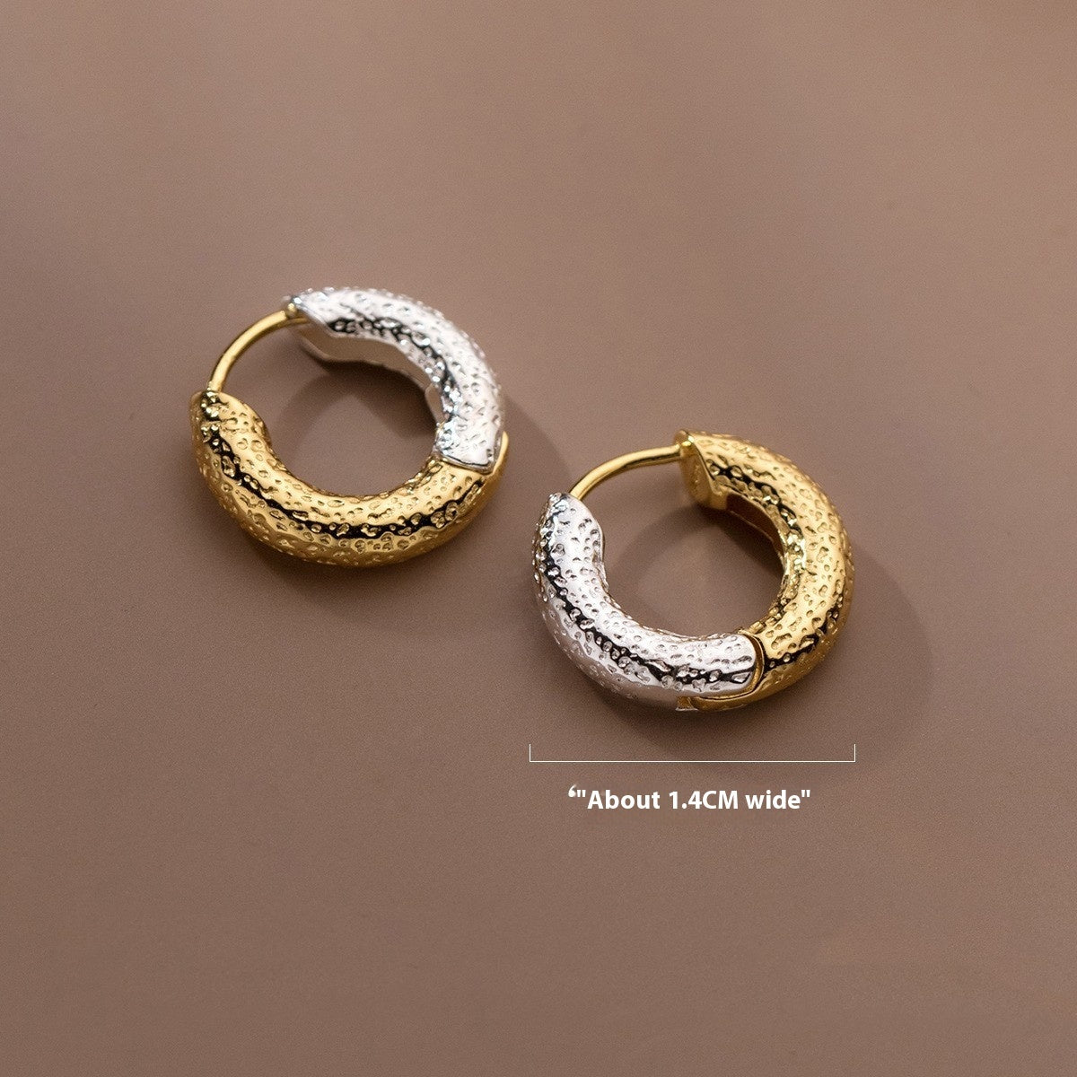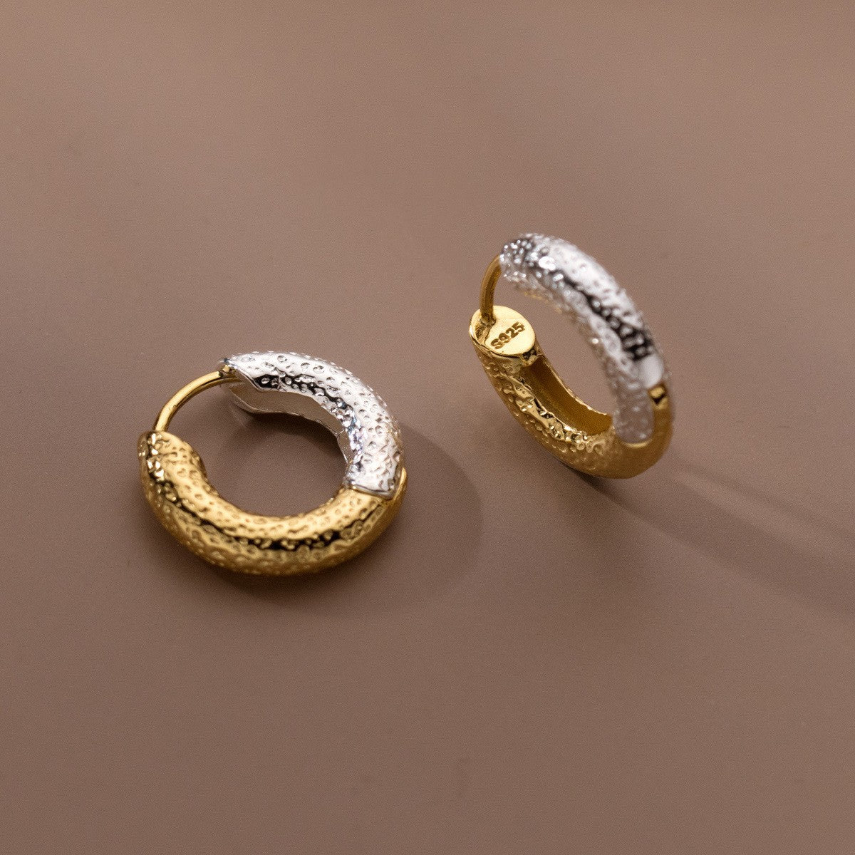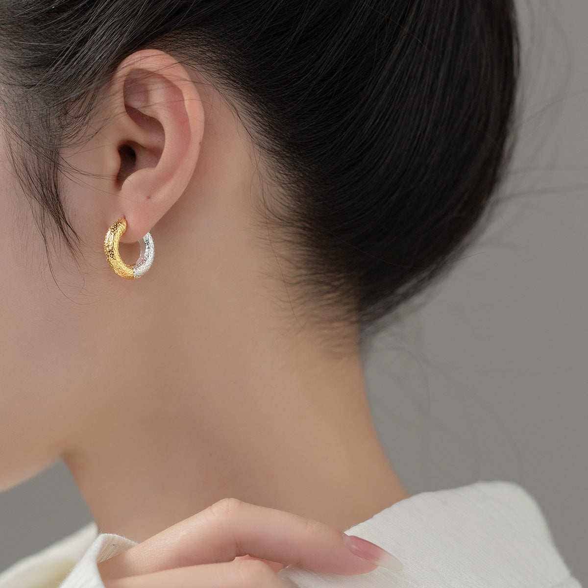 Two-color Concave-convex Texture Gold And Silver Contrast Color Earrings