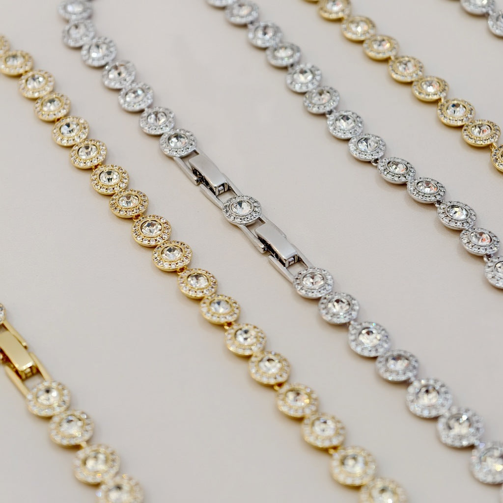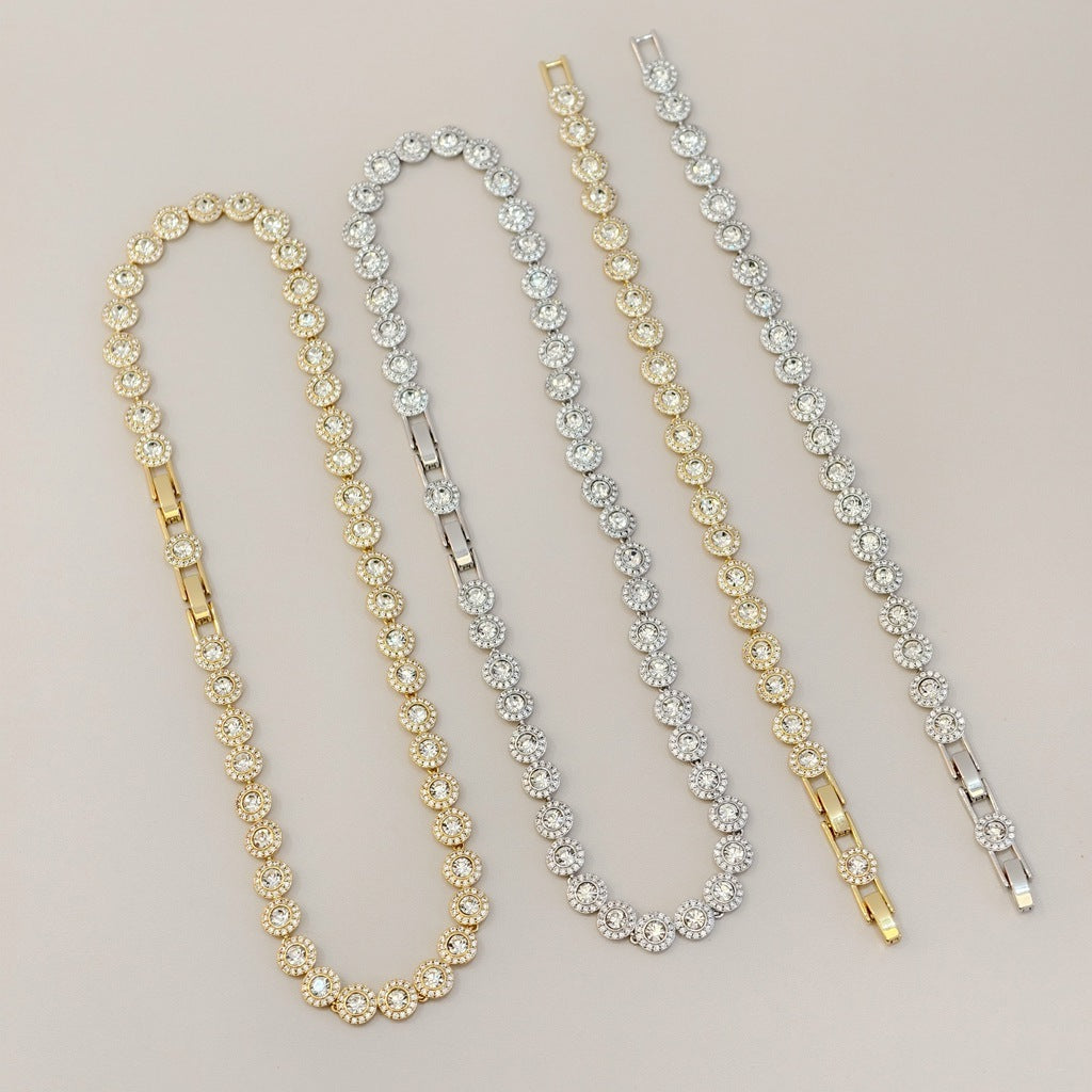 Color: white gold full diamond button necklace, gold full diamond button necklace, White Gold full diamond button bracelet, gold full diamond button bracelet