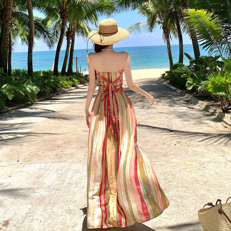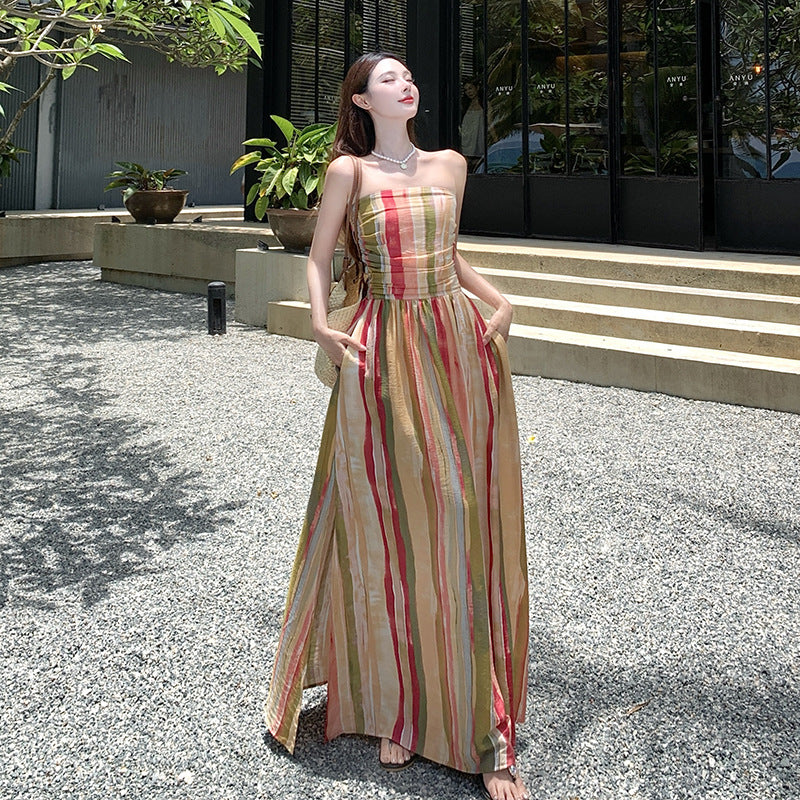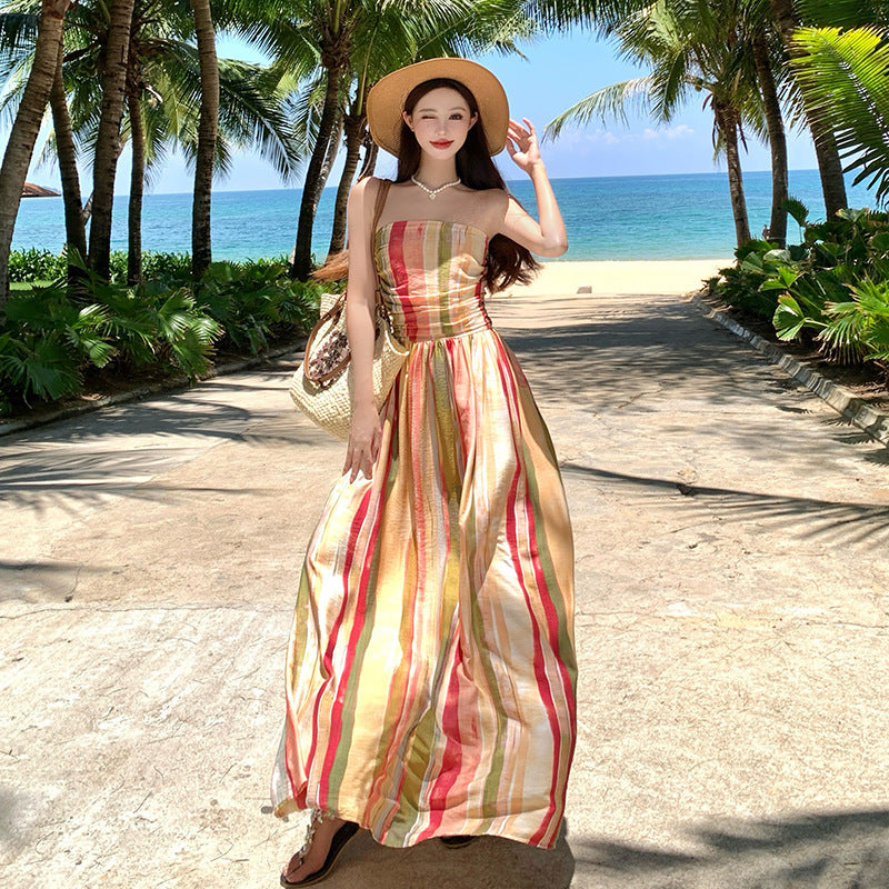 Waist Slimming Elegant Long Pure Style Tube Top Vacation Style Dress