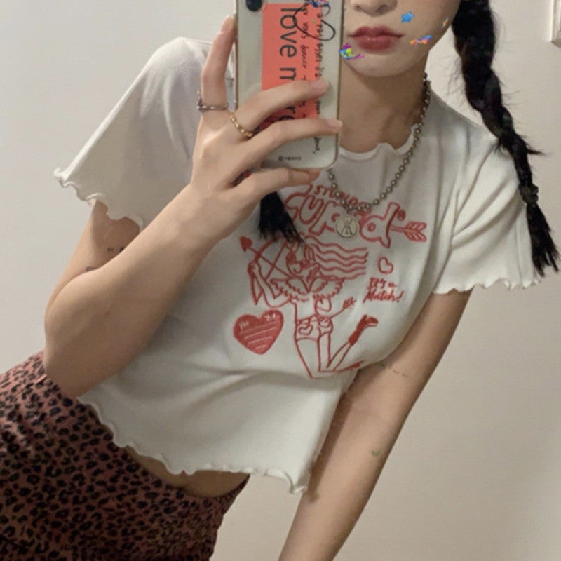 White T-shirt Women's New Cropped Navel Embroidered Top