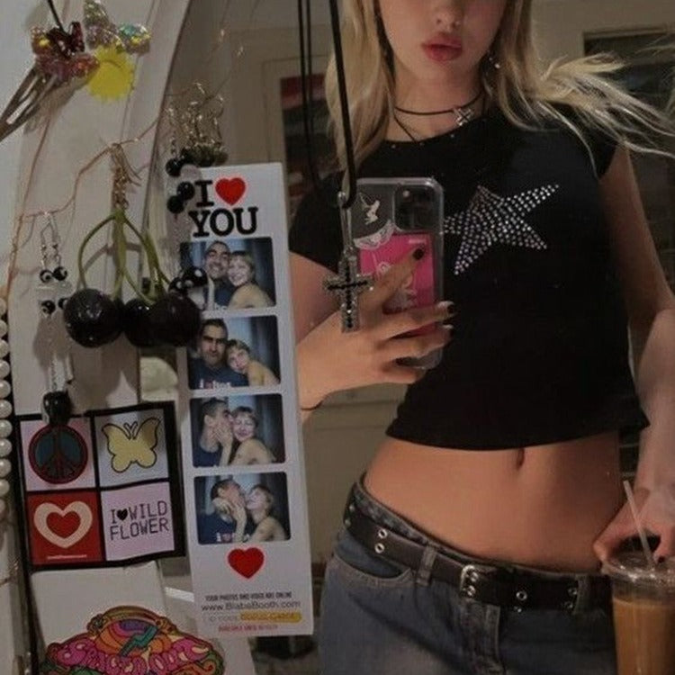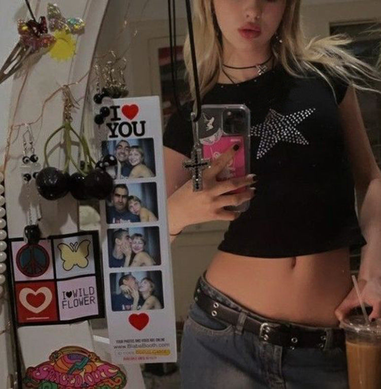Women's Casual XINGX Rhinestone Printed Round Neck Short Sleeve
