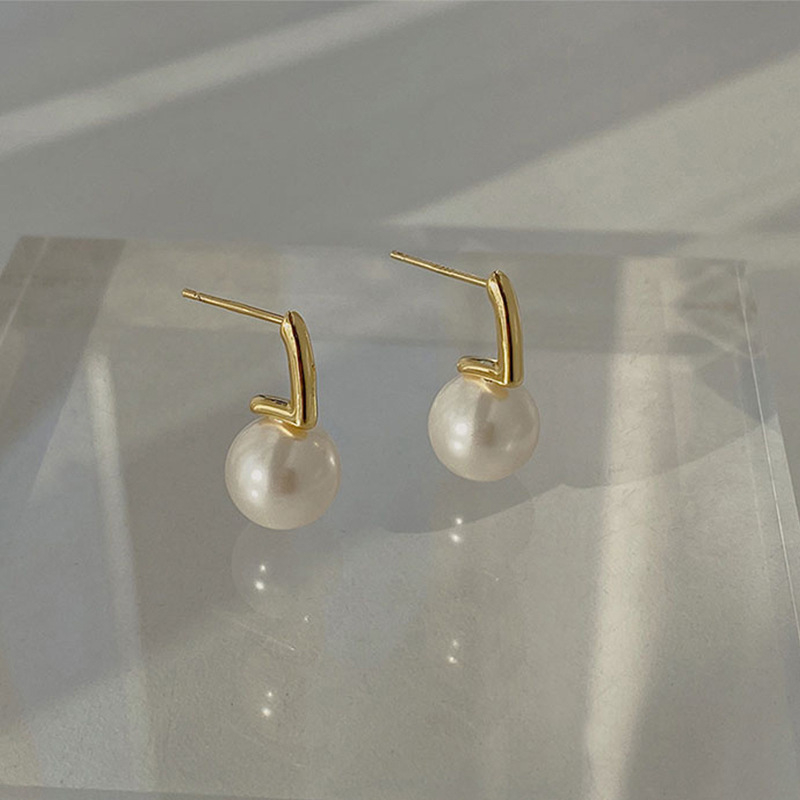 Women's Pearl Metal Stud Earrings