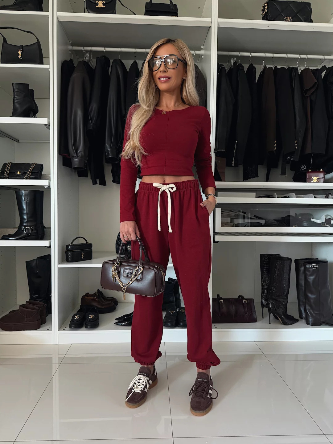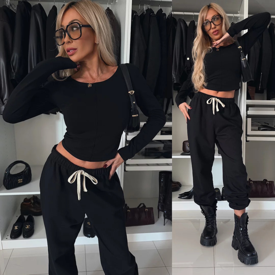 Women's Solid Color Casual Waist-exposure T-shirt Trousers