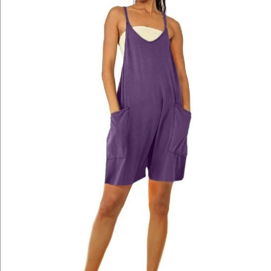 Zipper Patch Pocket Suspender Jumpsuit Fat Hip Pants